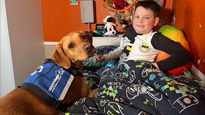 Autistic boy from Rugby gets 'life-changing' assistance dog that gives him confidence to go outside