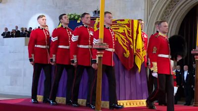 The British Army says the Grenadier Guards' 'very best soldiers' have been chosen for the solemn duty, escorting Her Majesty on her final journey from Buckingham Palace: