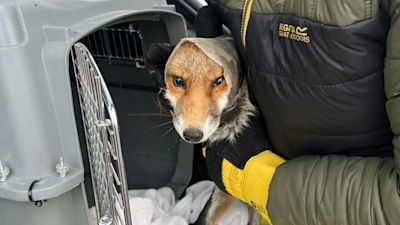 Gosport fox which had tube stuck around its neck caught by rescuers and receiving treatment
